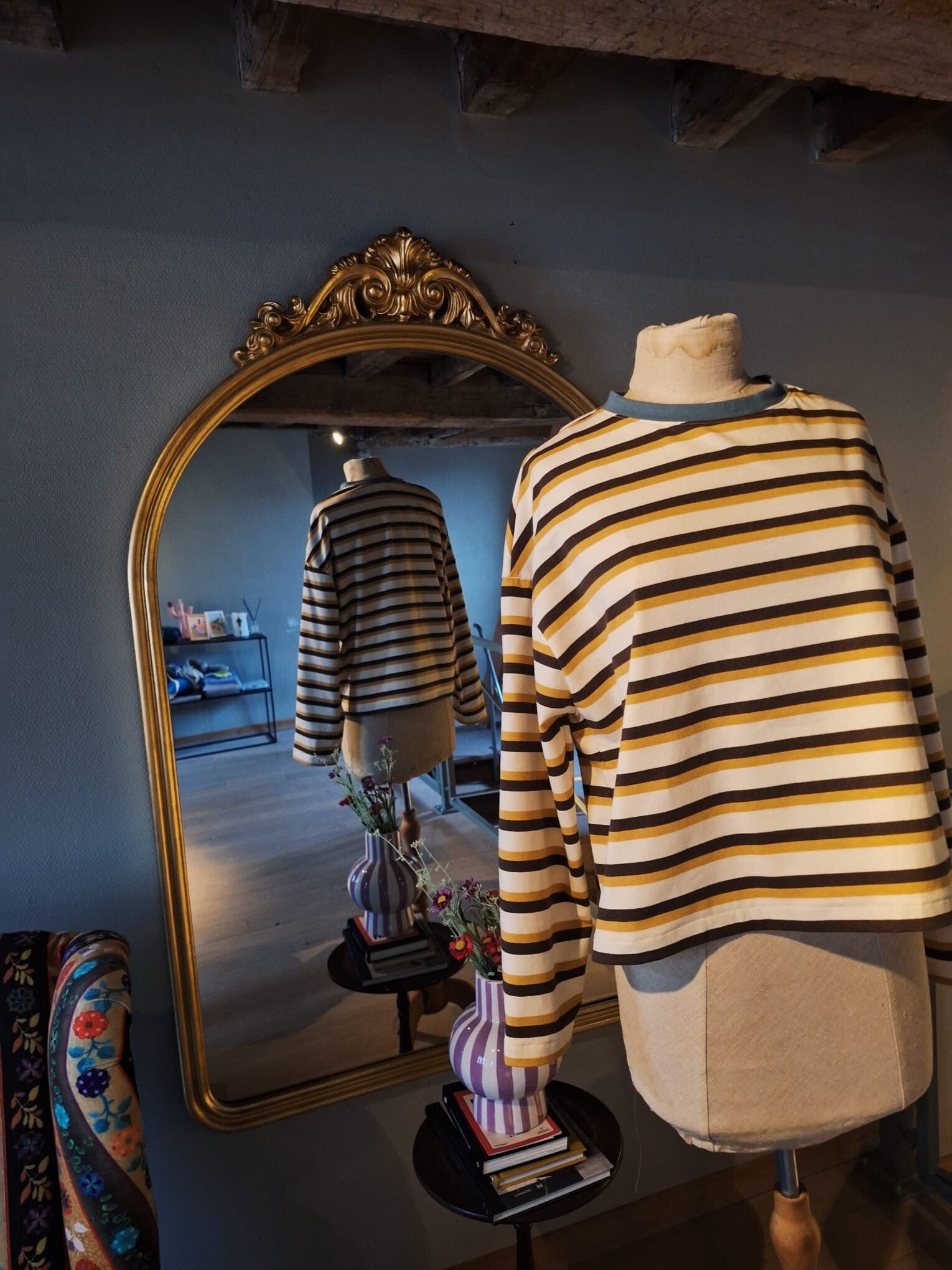 deadstock stof* strepen. Boordje, blauw.